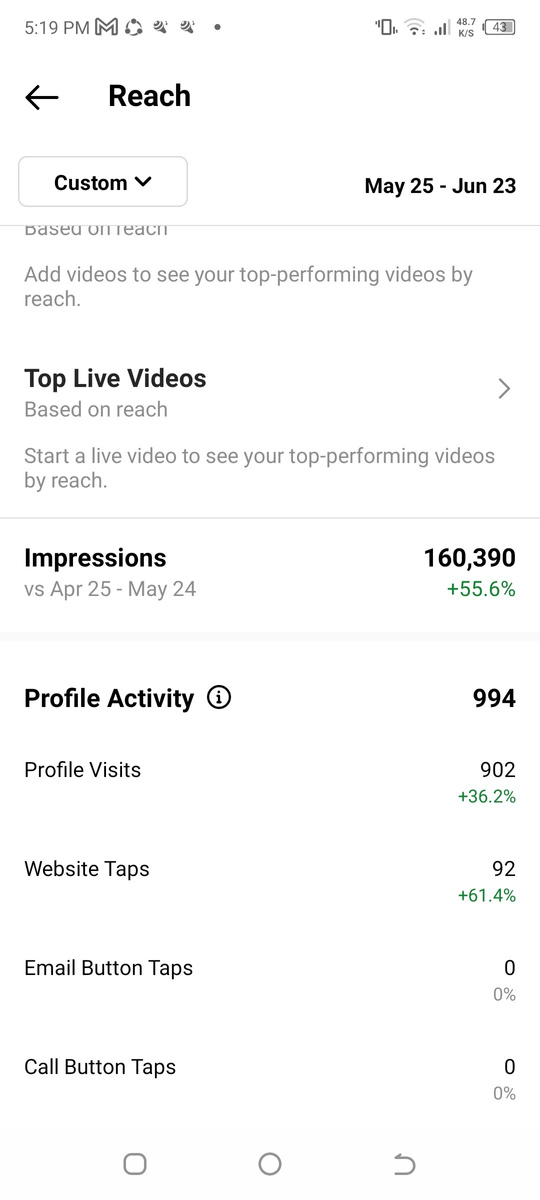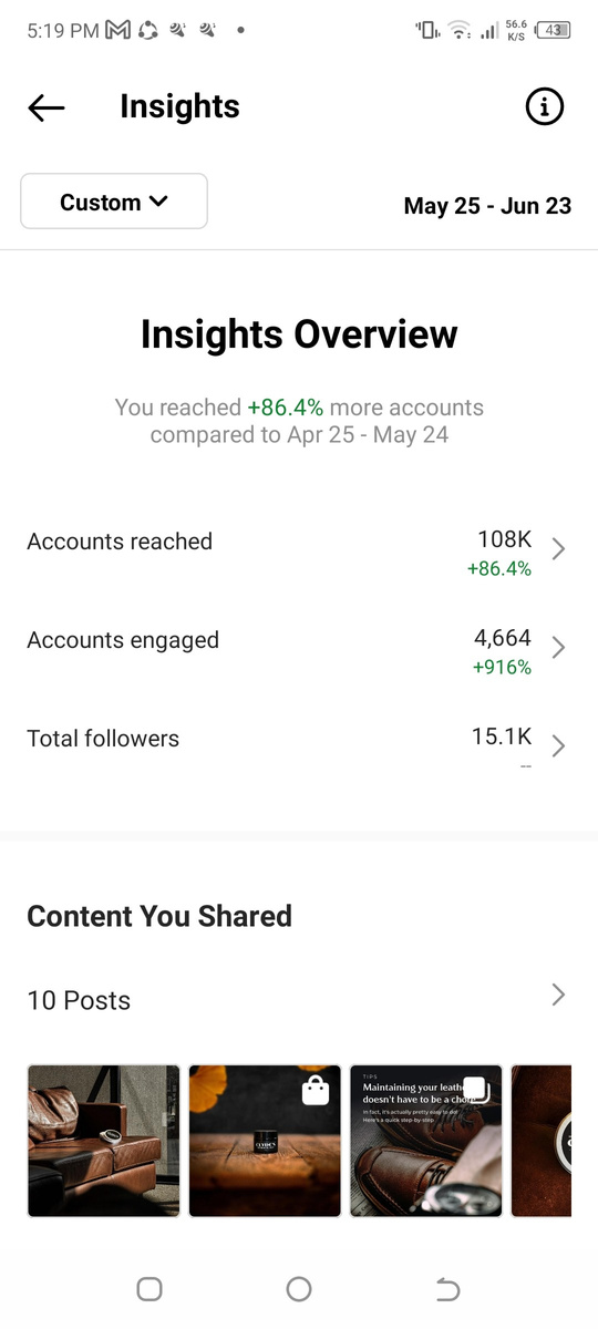 While working with me the brand experienced remarkable improvements in their Instagram performance: